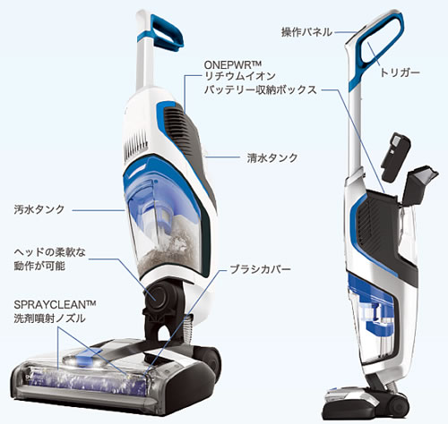 | 洗浄と吸水をワンステップで 革新的なクリーニングシステム ![]() ■特長 ●洗浄・吸引機能搭載でワンステップのお掃除が可能に. コードレスなので移動時の煩わしさもありません。 ●コーティング施工済みのハードウッド(無垢)フローリング、タイル、ラミネートフローリング、又はラグマットなどに対応。 ●マイクロファイバー製のブラシロールでごみをスムーズにこすり落とし、各種床をお掃除 ●強力な吸引力で水気のあるごみも乾いたごみも回収。 お掃除後に床が早く乾燥するのもメリットのひとつ。 ●ノズルとトリガーシステムを搭載。 専用の洗剤(低発泡)を使用することで更に洗浄力がUPします。 ●厨房など汚れの付着が多い場合は、スクラビングロールブラシを使えば頑固な汚れにも対応可能。 ●バッテリーはすべての製品に対応。 ●1年間の製品保証 ■各種床のお掃除がより簡単、迅速に 洗浄と吸引を同時に行うことができるので、コードに邪魔されることなく、これまでにないほど簡単に床をお掃除することができます。 コーティング、タイル、ラミネートフローリングからラグマットの掃除まで、各種床のお掃除を楽々こなすことができます。 さらに、マイクロファイバー製のロールブラシがごみをスムーズにこすり落とし、すばやく床を乾燥させることができます。 ![]() ![]() ![]() ■使用例 ![]() ![]() ![]() ■水洗いトレー ![]() ■各部名称 ![]() ■付属品 ![]() ■仕様
