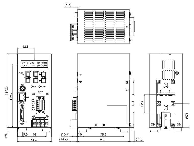 ■オプション 【定電圧方式LED同軸照明専用デジタルコントローラー】 ![]() ●ストロボオーバードライブ/ストロボ/PWMモード切替 ストロボオーバードライブから定常点灯まで対応。 ●イーサネット通信 外部インターフェースにイーサネット・パラレル(8bit) を搭載。 ●ストロボ調光機能 ストロボオーバードライブ時、通常の発光時間だけでなく電圧による調光が可能。DINレール対応の小型電源としては、当メーカーだけのオリジナル機能です。 ●小型軽量設計 小型で軽量なので、DINレール取付けも据え置き設置も場所を選びません。 ●パネル表示で簡単操作 ユーザーフレンドリーなパネル表示で簡単操作。 ■外観図 ![]()
