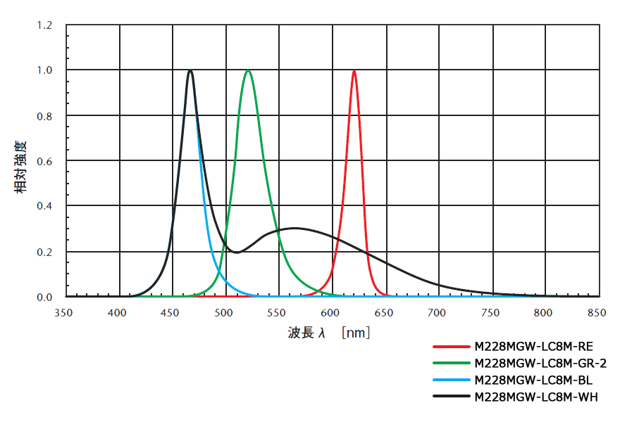 高照度チップ型LED同軸スポット照明(青)/ 品番 M228MGW-CC8M-BL 【詳細表示】