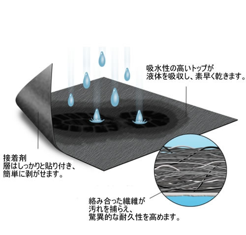 裏面粘着式ヘビーウェイトグリッピー産業用吸収マット — フォークリフトエリアでも、メーカー最も耐久性に優れた吸収マットを使用して、床を乾燥した安全な状態に保ちます。![]() ●グリッピーマットの裏面の粘着材がしっかりと固定しながら、簡単に剥がせます。 ずれたり、波打ったり、裏返ったりすることなく、設置した場所に正確に固定されます ●人や車両の往来に極めて高い耐久性を実現するために、ポリプロピレン100%の材質は熱圧着された上、針の穴があけられています。破れたり、ちぎれたり、ほつれたりすることはがありません ●油、冷却水、溶剤、水などを吸収し、保持します ●通路や広いエリアで漏れやオーバースプレーの吸収に最適です ●はさみや万能ナイフで簡単に切断できます。 ![]() ![]() ![]() ■使用イメージ ![]() ![]() ![]() ■仕様