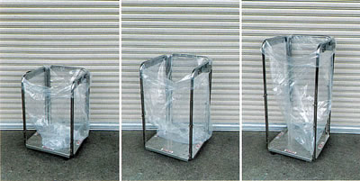 回収作業の効率化、ステンレス製で衛生的![]() ■特長 3段階の高さ調整が可能 ![]() ■磁石付き取手でビニール袋を固定 ![]() ■自在キャスター付きで移動がラクラク ![]() ■破袋後の廃プラ回収をスマートに ※使用しているビニール袋は120㍑/分です。ビニール袋は付属しておりません。 ![]() ■寸法図 ![]() ■仕様