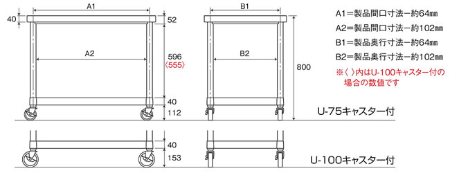 | ●天板にパンチングパネルを採用しているため通気性がありクリーンルームでの使用に適しています。 ●φ6mm11mmピッチで千鳥配列のパンチング天板・パンチング棚板仕様です。 ●高さ850mm以下同一価格です。 ●直径φ38mm太径パイプ採用の丈夫な作業台です。 ●φ75mmウレタンキャスター付です。 ※組立、設置、清掃時は必ず手袋を着用して下さい。 ![]() ■用途 研究施設、医療、厨房、各種工場などに。 移動台として。 ![]() ■寸法図 ![]() ■共通仕様
