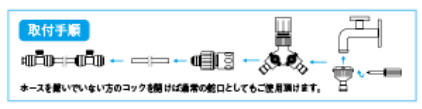 すぐ使える蛇口取付型ミスト![]() ■特長 ●蛇口直結で取り付けてミストを発生させます ●全長15mで蛇口から遠い場所でも使えます ●一般的な16mm丸パイプ蛇口でご使用いただけます ![]() ■取付手順 ![]() ■仕様