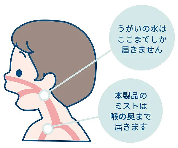 | 風邪・花粉の季節に生理食塩水ミストの新習慣 超音波振動によって水を霧化します。また、超音波方式だから生理食塩水が使え、むせずにスムーズな吸入ができます 約9μmのミストが、喉や鼻を加湿、洗浄し、不快感を改善します どこでも手軽に持ち運べるポケットサイズ。外出先でもデスクでも、いろいろなシーンで大活躍します 給水ユニットは丸洗いして繰り返し使えます。毎回の使用ごとにフィルター交換するなどの必要はありません ![]() ■特長 ●携帯に便利なポケットサイズ 持ち運び用の収納袋が付属しています。 ●約9μmの粒子径 粒子の大きさにより到達部位は左右され、小さいほど深部の末梢気道まで到達、沈着します。約9μmの粒子が、うがいでは届かない、のど・鼻の奥までしっかり届きます。 ![]() ●超音波方式 熱いお湯を使っていないのでやけどの心配がなく安心です。 ●生理食塩水が使用可能 水道水ではむせてしまう方でも、体液と同じ濃度の生理食塩水ならスムーズに吸入ができます。 (メーカー独自のテクノロジー) 生理食塩水は0.9%の食塩水で、付属の計量スプーンで手軽に作れます。 ![]() ●給水ユニットは丸洗い可能 給水ユニットは取り外して丸洗いでき、繰り返し使えます。 毎回の使用ごとにフィルター交換するなどの必要はありません。経済的に使用できます。 (給水ユニットの交換目安は1年です。毎日3回、5分使用した場合) ![]() ■使用例 ●満員電車や職場など人混みに入るとき ●旅行や出張時の乾燥しがちな飛行機の機内など、移動中ののどのケアに ●外出先やデスクなど、いろいろなシーンで大活躍します。 ![]() ●仕様