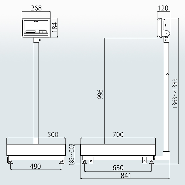 (ただし、デジタルロードセル部はアルミ製、高耐食ウレタンコーティング仕様、底カバー付き) |
