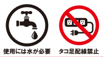 (!)注意 ●初回使用時は水を満タンまで入れてから起動してください。 ●本製品の STRONG COOLING 機能を使用する際は上蓋を開け、水が両側の槽に給水されてることを確認してから使用してください。 ●水が不足すると故障の原因になる可能性があります。 ●必ず定期的に給水するようお願い致します。 ●TRONG COOLING 機能を使用する場合は、M3469SAF-1180N専用の電気回路を用意してください。 ●100V 以下の電圧で使用する場合は、弊社推奨の昇圧機をご使用ください。 ![]() |