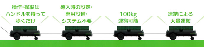 手押しでつらかった腰・腕・足への負担から解放されるうえ、大量運搬作業をどんな方にでも任せることが出来ます。