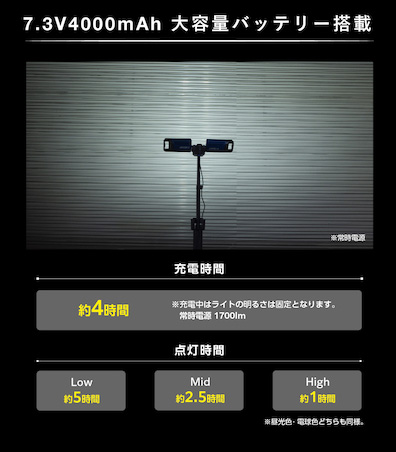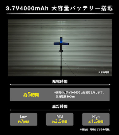 | 充電式組立伸縮LED照明灯/品番 M3607FL-ST5000H |
