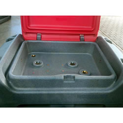 | 軽油・灯油運搬容器 危険物の規制に関する規則(第四類・危険等級Ⅲ) ![]() ■特長 ●危険物取資格・免許不要でお使いいただけます。 ●UN規格を取得した、消防法適合の給油機能付き運搬容器です ●オートストップガンを搭載。満タンになったら自動で注油ストップします。 ■低密度ポリエチレン製 十分なUV耐性を保持結露しにくい材質 ![]() ■フォークリフトポケット搭載 フォークリフトなど重機による荷役に対応 ![]() ■4箇所にワイヤー通し穴を装備 満タン充填時でもクレーンの吊り上げが可能 ![]() ■蓋ダンパー ![]() ■6mホースの標準化 ![]() ■燃料キャップホルダー ![]() ■深溝構造、暴風雨時の雨水侵入防止 ![]() ■気候試験 【UN規格容器試験】 収納する危険物の摂氏55度における容器の振動・底部持上げ・頂部吊上げ・気密・水圧・落下等、各試験を実施。 結果:合格。 【日本版仕様容器試験】 気温60度・湿度80%に設定した人工気候室に運搬容器を5時間入れ経過観察。 さらに、取り出した運搬容器をフォークリフトに取り付け振動試験。 結果:容器変形なし。油漏れなし。 ■FMT社製運搬容器は国際輸送適合の「UN規格」を取得 以下のUN表示は、危険物等を入れた容器で船舶輸送する際、その容器が国際勧告(UN規格)に適合している旨を表すものです。 UNマークが添付(表記)された容器は、一般社団法人日本船舶用品検定協会の検査を受け合格した製品であり、消防法の基準も当然クリアした燃料運搬容器です。 国連加盟国196カ国で運用される国際規格であり、日本国内における輸送はもとより国境を越えた輸送の場合、陸上に限らず船舶・航空輸送時でも安全安心に運搬することが可能です。 ■当該の運搬容器は軽油・灯油専用の運搬容器として開発し、輸送用機械での積み下ろしを前提として設計されています。 当運搬容器は荷役機能を備え、UN規格を取得しており、燃料運搬容器として消防法に適合しています。 UN規格を取得した給油機能一体となった構造の運搬容器は、危険物の規制に関する規則第43条の「機械により 荷役する構造を有する運搬容器として整理することができる。 ( 総務省消防庁 令和4年4月 報道資料より) ![]() ■使用操作方法 ![]() ![]() ![]() ![]() ![]() ![]() ![]() ![]() ![]() ![]() ■タイプ