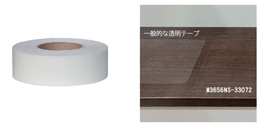 | ご用途に合わせて使い分けられるカラーバリエーションモデルです。 注意喚起など視認性を高めたストライプ柄や、床面の色を損なわない透明モデルなどをご用意しています。 ![]() ■タイプ・仕様 ●歩行路滑り止め透明テープ(屋内用)/品番 M3656NS-33072・M3656NS-33074 従来の透明タイプより透明度が高く、床材の見た目や風合いを損なわず滑り止めの効果を得られます。 ![]()