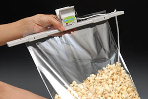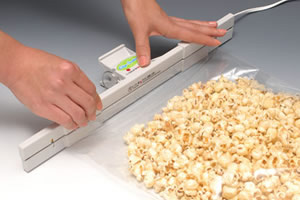 | 押すだけ簡単シーラーのハンドインパルス。 職場で、ご家庭でポリ袋を1秒前後でピタッと簡単密封!!(タイマーで約2秒まで伸ばせます) ![]() ■共通特徴 ・質の高いシールができるため、少量の業務用包装に最適です。 ・袋を立てた状態でシールできるので、水物・液体に対応できます。 ・シールをつなげて行うことで、大きな袋作りにも対応できます。 ・別売のマグネットで冷蔵庫やスチールデスクの側面にくっつけておけば、すぐに取り出せて便利です。(M367SR-400W) ・ご家庭にて、多量の食材を小分けにし、長期間保存できます。 ・誕生日プレゼント、ギフト、贈答品としてもご好評頂いています。 ●M367SR-200W ![]() 20センチ幅のシールができます。 小型で軽量でありながら、簡単に本格的でしっかりとしたシールができるシーラーです。 従来製品に比べて圧倒的に価格を抑えて、大変お求めやすくなりました。 場所をとらないので、キッチン、オフィスから工場まで、一台あると大変便利です。 ![]() ![]() クリップの取手をにぎって口を開け、ポリ袋をはさみます。 予熱は不要。 ランプが消えるまでボタンを押すだけ。(タイマーにより自動的に切れます。) あとはそのまま2秒ほどおくと、丈夫で美しくシールされます。 スイッチを押しながら本体中央部を指で押してプレス力を強くするとより丈夫なシールが出来ます。 ●M367SR-400W ![]() 40センチ幅のシールができます。 米袋など幅広の重量物が簡単にシールできます。 中空でも使えるので、重量物を動かす必要も無くとても便利です。 ![]() ![]() クリップの取っ手をにぎって、口を開けポリ袋を挟みます。 シワがよらないように注意します。 M367SR-400Wは長いので必ず両手で両側補強部を押しながらボタンを押します。 ランプが消えそのまま2秒ほどおくと、丈夫に美しくシールされます。 ■仕様