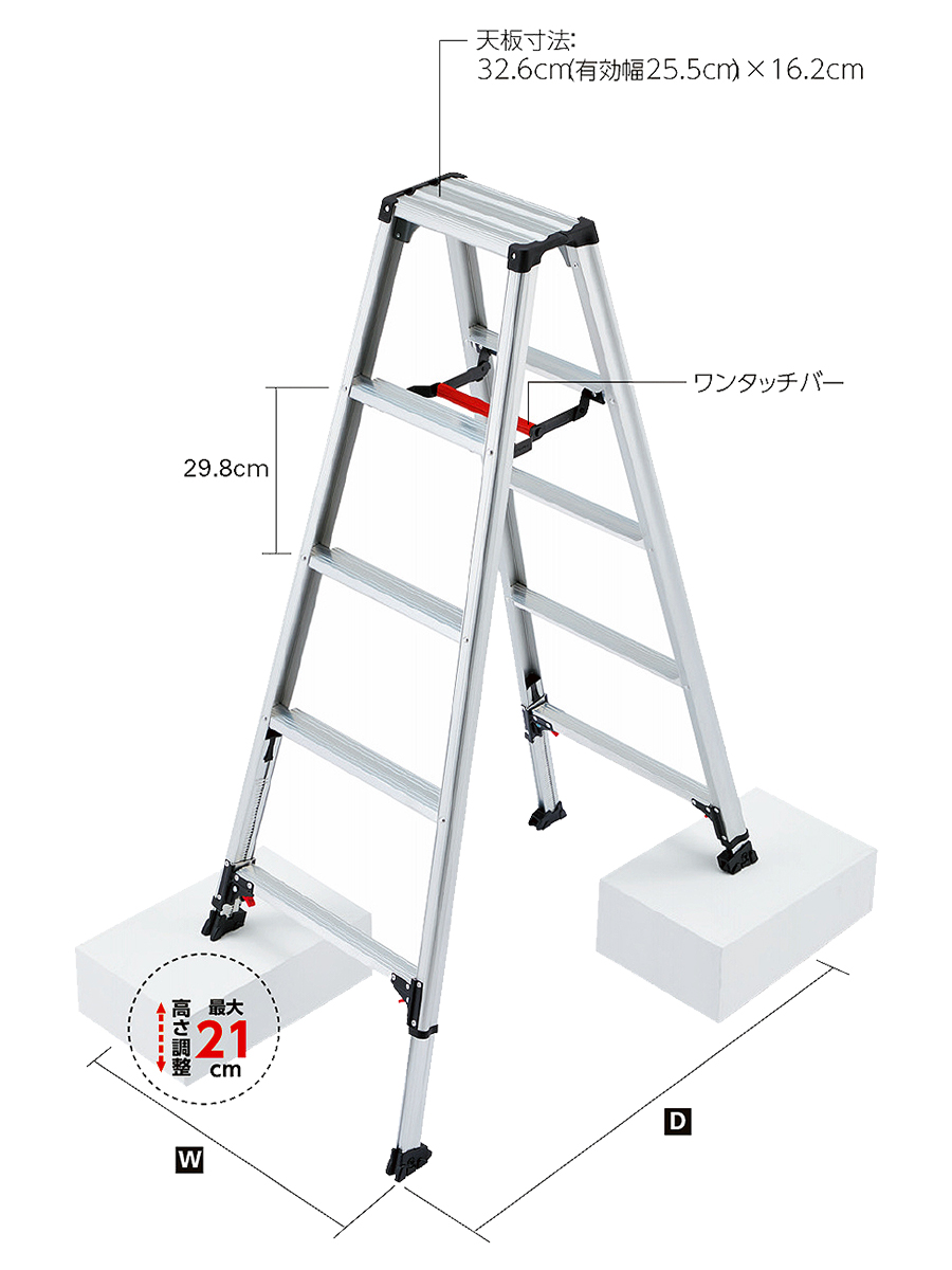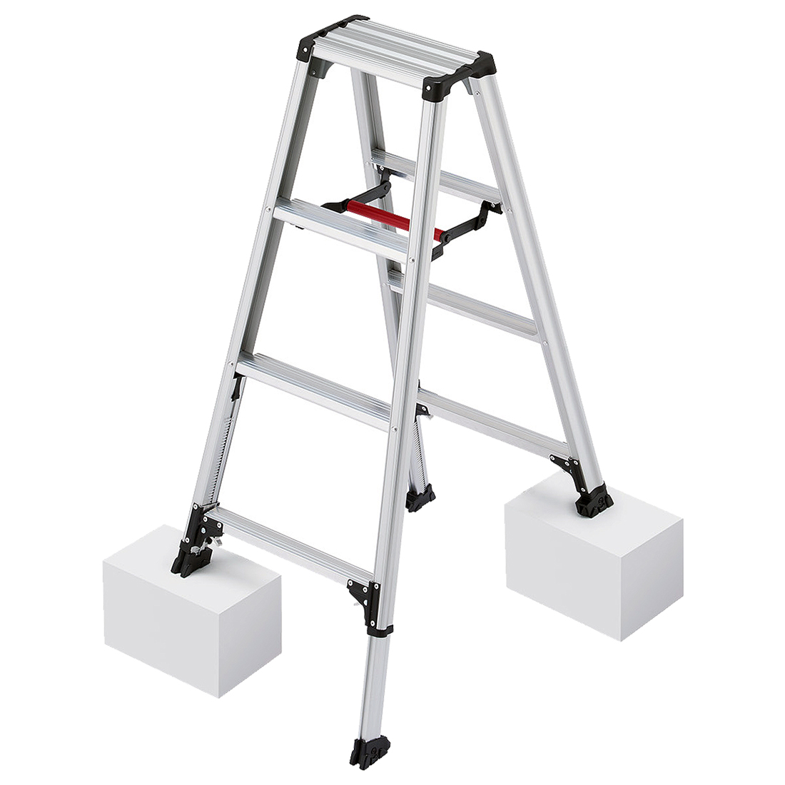 | ■特長 ●脚部伸縮式で凹凸に対応 ●丈夫さはそのままに最大30%の軽量化を実現。肩当たりも改善し、負担も軽く。 ●開き止めが進化。新開発「ワンタッチバー」で作業効率が向上。 ●シリーズ全てJIS適合品に。品質・性能ともに安心。 ●天板がフラットになり、袖や腰袋の引っかかりを防ぐ。 ●移動の際は、バーを掴んだらそのまま開き止めを解除しながら持ち上げられる。 ●踏ざん裏に張りを持たせ、肩当たりをやわらかく。 ●アジャスターには目盛りが付いているので段差の違う現場でも調節が簡単。 ![]() ■寸法 ![]() ![]() ■タイプ