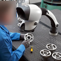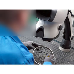 | 人間工学に基づいた設計・幅広い用途・生産性の向上 人間工学に基づいて設計された接眼レンズの無い見やすい実体顕微鏡です。 接眼レンズが無くレンズに目を近づける必要がないため、作業者の目や頭の自由度が高まり疲労を大幅に軽減させ生産性の向上に貢献します。 ![]() ■優れた立体イメージで幅広い検査・リワーク作業に最適なエルゴノミック・マイクロスコープ ●アイピースレス光学技術の優れた立体像を見易いビューイングヘッドで観察 ●最大20倍までの幅広いレンズオプション ●広い視野径と深い被写界深度を両立 ●無影高色再現性LED照明 ■小型・低価格を実現した汎用型 低価格・高性能の低倍率3Dビュー イングシステムです。 従来拡大鏡が使われていた低倍率検査に最適です。 特許取得のアイピースレス光学系で優れた立体像を自由度の高い姿勢で観察 高コストパフォーマンスの3Dビューアーで拡大鏡から低倍実体顕微鏡をカバー長い作動距離と深い焦点深度でサンプル操作やリワーク に最適 クイックチェンジ可能な2、4、6、8倍対物レンズ高色再現性の白色LED照明搭載。豊富なスタンドラインアップ カウンターバランス型のユニバーサルスタンドが付属しているため、柔軟性があり使いやすいのが特徴です。 焦点合わせ機能内蔵の安定性の高い ロープロファイル・ベンチスタンド、サブステージ透過照明付き。 ■優れた人間工学設計 長時間の作業における疲労を軽減させるため、最も自然な目と手のコーディネーションを念頭に設計されました。 画期的な3D光学像は複雑な形状観察に最適です。 レンズから目を離して観察できるので従来の顕微鏡と違いメガネをかけたままで作業が可能になりました。 ■幅広い用途 現在、照明拡大鏡や実体顕微鏡をお使いのアプリケーションにお薦めします。 金属加工、樹脂、セラミック部品外観検査、エレクトロニクス分野での電子部品やプリント基板検査、はんだ付作業など様々な分野で広くお使いいただいています。 ■生産性の向上 特許の光学技術により、作業姿勢が大幅に改善され、顕微鏡作業での問題であった疲れによる作業性の低下を防ぎ生産性の向上に貢献します。 ■構成 用途に合わせて構成をすることができます。 省スペースのユニバーサルスタンド(写真)、安定性の高いベンチスタンド、長距離移動用の関節式アームスタンド、または大きな観察対象を立ったままで検査するためのフロアスタンドなどから選択します。 ![]() ■画像取込機能 USB2.0 HDデジタルカメラが内蔵されています。 画像取込ソフトウェアuEyeコックピットで保存や計測が簡単に行えます。 ![]() ■フローティング ステージ ロープロファイルベンチスタンドにはフローティング ステージが装着できます。前後左右にスムーズなスライドで小さなサンプルの観察には最適です。 ![]() ■UV・白色照明 UV光と白色光を切り替えて使える照明も用意しています。 ![]() ■止まり穴の検査 止まり穴など通常のリング照明では光の入らない箇所の検査用としてEPI照明をお使いください。 ![]() ■アプリケーション エレクトロニクス、自動車部品、航空宇宙、医療、教育など広い分野の様々なアプリケーションにお使いいただいています。 ![]() ■プレシジョンエンジニアリング 鮮明な立体像で見にくい欠陥も簡単に確認。 ![]() ■医療 鮮明な立体像でミスが許されないステントやカテーテルなどの医療部品検査に最適です。 ![]() ■エレクトロニクス プリント基板や電子部品の検査やはんだ付けなど長時間の作業における疲労を軽減させ生産性の向上に貢献します。 ■研究所やライフサイエンス サンプル前処理や解剖など、長期間の集中を必要とするアプリケーションにお薦めします。 保護ゴーグルをかけての観察も問題なく、安全キャビネットの中での使用も可能です。 ![]() ■プラスチックとゴム ゴムシール、プラスチック部品の検査 ![]() ■歯科 歯科技工作業やカラーマッチングに活躍しています。 ![]() ![]() ![]() ■レンズの仕様
