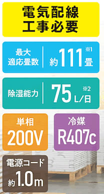 ■広い場所でもパワフル除湿 カビや結露を防ぎます。工場・倉庫などでのご使用に
