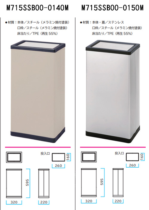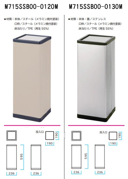 | 角型屋内用スチールゴミ箱/品番 M715SSB00-0120M | 【詳細表示】 | ||||||||||||||||||||||||||