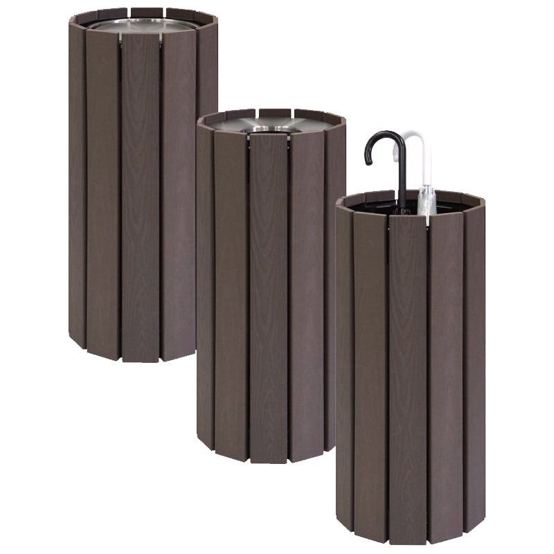| ■特長 ●天然木のような質感を持つ再生樹脂製の屑入です。 ![]() ●上部形状により屑入・灰皿・傘立てとして使用可能ですので、複数設置をする時に統一性を持たせる事が可能です ![]() ●ダストボックスの投入口は回転蓋付です。(M715SSB64-0030M) ![]() ●受け皿に水を溜めて使用する事で吸殻を回収可能です。(M715SSB64-0040M) ![]() ■使用例 病院、公共施設、ホテル、レジャー施設、複合施設等に ■タイプ