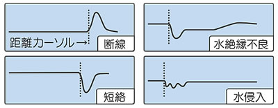 タブレットのカラー大画面でケーブル測長・診断とデータ保存ができます。![]() ■特長 ●微細な障害箇所までの距離を特定可能 ●専用ソフトで測定結果をPC画面で解析 ●本体メモリーに50回までのイベント保存 ●良線と障害線の比較が出来る2現象表示 ●撤去ケーブルやドラムの残量測定 ●2芯以上のすべてのメタルケーブルに対応 ●ケーブル障害内容が波形で分かります ●Bluetoothで測長データを無線送信 ●端末機器やセンサーの故障診断も可能 ●配線路探索トーン発信機能を装備 ●現場で便利なUSB充電式 ●開放・短絡・機器接続状態で測長可能 ■波形診断表 ![]() ![]() ■仕様