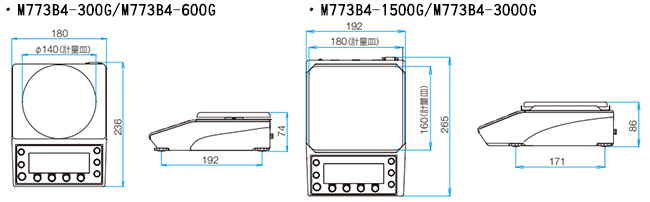 食品、薬品や微小品の計量・計数に最適なマルチタイプの電子天びん。![]() ■特長 ●全機種、正確性、安定性を追求した音伹センサーを採用。 ●重量モード、個数モードで、計量・計数作業に対応。 ●3ひょう量切換え機能付きで、1台で3台分の働きを実現。 ●暗い場所の作業でも見やすいバックライト付き液晶表示。 ●専用ACアダプタ/USBバスパワー(標準装備)、 乾電池(別売)で駆動可能。 ●大型薬包紙に対応する大型皿(φ140)を採用。(M773B4-300G、M773B4-600G) ●国家検定合格品 ■製品画像 ![]() ■外形寸法(単位:mm) ![]() ■品番 ●共通仕様
