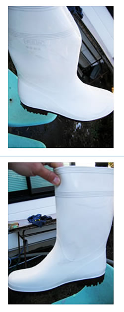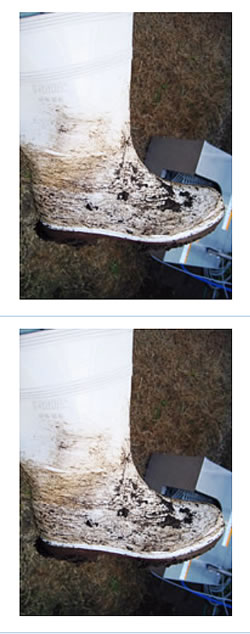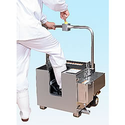 左右2方向からのシャワーと3面からのブラシ回転で長靴の靴底、側面についた油・泥・粉体等の汚れをしっかり落とします。![]() 長靴洗浄装置とは、食品工場や工事現場などの作業で汚れた長靴の靴底、側面を水とブラシで洗浄する装置です。 長靴洗浄装置は、左右2方向からの水のシャワーリングと、左右側面と靴底面の3ケ所にある丸型ブラシの回転により、汚れをしっかり落とします。 靴底ブラシは靴底の汚れをしっかり落とすため硬質仕様に、側面ブラシは長靴を傷つけないため軟質仕様になっています。 コンパクトでキャスターも付いているため、移動が簡単で、省スペースなのも特長です。 ![]() ![]() ■特長 ●左右2方向からのシャワーと3面からのブラシ回転で長靴の靴底、側面についた油・泥・粉体等の汚れをしっかり落とします。 どんな強固な汚れもしっかりと洗い落とすため、建設現場や機械工場など様々な場所で活躍します。 ●ボタンを押している間だけ稼動するため、操作が簡単で省エネに優れています。 必要な分だけご利用いただけます。 ●ステンレス仕様のため、錆びに強く衛生的です。 食品工場などの高い衛生環境が求められる場所でも、安心してご利用いただけます。 ●軽量でコンパクトです。またキャスター付で移動も容易です 簡単に移動でき共用可能なため、1台の導入でも高い費用対効果が期待できます。 ●ブラシは黒色のため、異物混入防止対策になります。 高い洗浄効果に加えて、衛生環境が汚染される可能性を事前に発見・排除することに役立ちます。 ●左右どちらからも排水配管が出せます。 排水配管の位置調整が可能なため、設置場所を選びません。 ■汚れ落ち試験 長靴全面に泥をつけた状態で評価