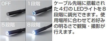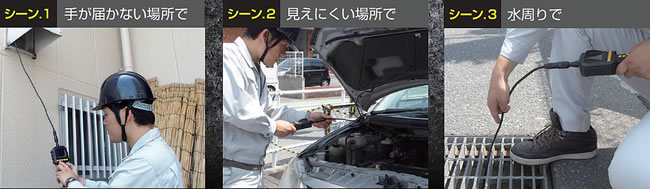 ■オプション 1m と 5m の延長ケーブルをご用意しております。 ![]() ■ケーブルを取り付けることで、長い配管などを確認することができます。 ![]() |