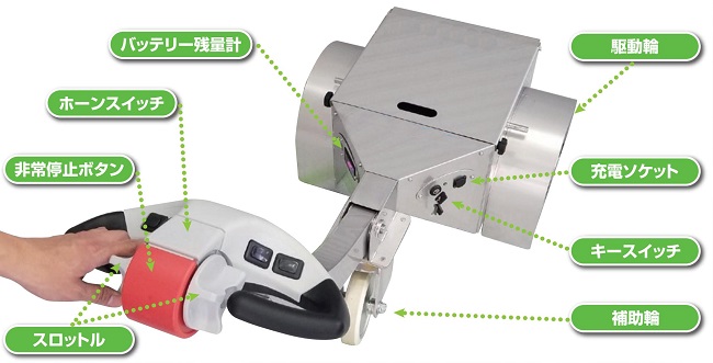 | ●重量物搬送の省力化に ●ラクラクスロットル操作 ●最大荷重1,000kg/1,500kg ![]() ![]() ![]() ![]() ■仕様