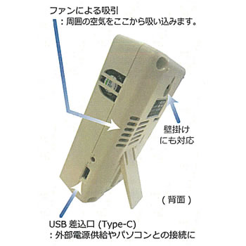 | ●製品に組み込んだファンにより素早く周囲環境に馴染みます。 ●任意のガス濃度設定が可能な校正機能付きです。 ●データロガー機能を搭載し、トレンド等のデータの確認・検証が可能です。 ●有機EL表示により視認性に優れます。 ●任意濃度設定が可能な2段階警報アラーム機能付きです。 ●ハンディ、卓上、壁掛けでの測定に対応可能です。 ●二酸化炭素濃度測定器の選定等に関するガイドライン適合品です。 (経済産業省・産業用ガス検知警報器工業会 2021.11.1) ※データロガ-用取扱説明書はこちらからダウンロードできます。 ![]() ■検知原理 光学式:NDIR(非分散型赤外線式) ■手動校正機能付き 任意に校正できます 校正 環境が異常の場合、校正防止機能あり ■CO2濃度2段警報 ブザー LED点灯/点滅 測定値点灯 ■ロギング機能 本体で確認可能 ■有機EL表示 暗い場所でもクッキリ見える ■壁掛けも可能 ■動作確認のポイント ●屋外の二酸化炭素濃度を測定し、外気の測定値が415~450ppm程度に近いこと ●測定器に呼気を吹きかけ、測定値が大きく増加すること ●消毒用アルコールを塗布した手や布等を測定器に近づけても、二酸化炭素濃度の測定値が大きく変化しないこと。 ![]() ![]() ■仕様