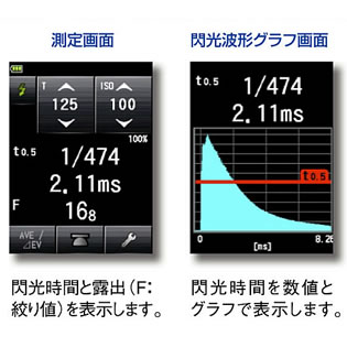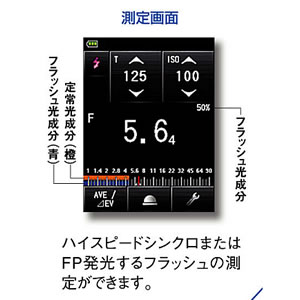 世界初ハイスピードシンクロ対応の多機能露出計![]() ■新機能・性能 ●フラッシュ光解析 ●フラッシュ光HSSハイスピードシンクロの露出測定 ●低照度・輝度測定の性能向上 入射光で-5EV、反射光で-1EVまで(ISO100時) ●フラッシュ光電波コントロール ●フラッシュプリ発光キャンセル ●映画撮影機能の拡大 シネカメラ、HDカメラモード搭載。1~1,000f/sのシネコマ数や358°までのシャッター開角度設定、フィルター補正など ■基本機能・性能 ●入射光式と反射光式の兼用モデル ●分離測光(定常光とフラッシュ光をアナログスケールとパーセントで表示) ●露出プロファイル(最大10件分) ●液晶タッチパネル ●簡易輝度測定・簡易照度測定 ■フラッシュ光解析モード ![]() ■HSSコードレスモード ![]() ■フラッシュ光電波コントロール ![]() ■デジタルカメラに最適な露出プロファイル機能 フィルムと違いデジタルカメラは機種やソフトウェアによって再現性が変わってきます。 露出プロファイル機能は、それぞれのデジタルカメラの再現可能な領域を露光域としてグラフ、数値化しプロファイルすることができます。 プロファイル化するには専用ソフトウェアを使い、露出プロファイルの作成手順で作成します。 プロファイル化された露光域はデジタルカメラのダイナミックレンジとして露出計に転送することで測定した露出が露光域かどうか確認し、露出決定の判断材料として活用することができます。 また、フレームレート、シャッター開角度に対応し、デジタルカメラだけではなくシネカメラの露出プロファイルも作成することができます。 ![]() ■仕様
