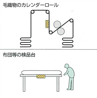 | 原材料・半製品・製品の中に混入した鉄片・針などをオンラインで自動キャッチ アルミ包装品でも小鉄片を検出 ![]() ![]() ■広幅検査物中の混入鉄片をオンラインで自動探知 繊維、食品、化成品、紙・パルプなどの原材料、半製品、製品の中に異物・危険物として混入した小鉄片(針・針金・ボルト・ナット・機器の折破損破片など)を生産、検品ライン上で自動探知し、品質管理、機器の保護、人体への影響などを防止する高性能な探知装置です。 ■用途 ●テキスタイル、カーペット、フェルト、不織布、原則など広幅繊維製品に混入した針・針金・ホチキス針・折損片など鉄製異物の探知。 ●布団の中の針・折れ針・毛布など起毛対象物の起毛針・折れ針・鉄片の探知 ●ゴム、プラスチック原料、シート、その他各種の工業原料、製品に混入した鉄製の針金・ボルト・ナット・鉄・針など小鉄片の探知 ●食品、パック商品、医薬品などに混入した小鉄片の探知。 ●アルミ箔包装品の中に混入した小鉄片の探知。 ■原理 永久磁石の磁界中を針・鉄片など磁性体が移動(運動)すると探知コイルに微小な起電力が発生します。 これを増幅して警報回路が作動し、ランプ・ブザーで知らせ、同時に外部接点出力によりモーター等をストップさせます。 ![]() ■長尺検針機(鉄片探知機)W2000mm/品番 MC29K-2200-W2000S 特長 ●微小鉄片を探知する超高感度 10倍の超高感度(メーカー比)。探知電極面上1mm以内では、φ0.3×L0.5mmの微小鉄片をも超高感度で探知します。 ●最新の高安定性回路 最新のテクノロジーにより、振動や電源ノイズなどの周囲条件でも影響が小さく、安定した連続使用が出来ます。 ●高性能の探知電極 50年以上の経験、実績、ノウハウから生まれた探知電極は、取付部周辺の金属からの影響範囲を小さくした画期的な電極です。 探知幅4.7mまでチャンネル数との兼ね合いで制作いたします。 ●アルミパック商品にも有効 永久磁石利用の電気誘導方式ですから、アルミ箔等の影響が微弱であり、鉄・鋼・フェライト系ステンレスのような磁性金属に強く反応するため、微小鉄片でも探知できます。 ■長尺検針機(鉄片探知機)W2000mm/品番 MC29K-12TR-W2000S ●多数の納入実績 テキスタイル、カーペット、布団、毛布、フェルト、不織布などの広範囲繊維製品、パック食品、パック食品、紙、ゴム、樹脂製品などの業界に広く納入し、活躍しています。 ●優れた耐久性を実現 高性能な電子回路と永久磁石の電極は、高い初期感度を維持し、優れた安定性を実現しています。 ●厚物に威力を発揮 布団、フェルト、毛布など比較的厚物の広幅用に威力を発揮します。 ■本体タイプ