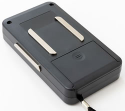 | ●木材に軽く押し当てるだけで測定できます。 ●厚み、密度、温度補正機能。 ●住木技術センター認定器種。 ●電極は底面に2本、側面に1本(側面電極特許申請済、形状意匠登録申請済) ●反っている木材、ラフ材にも対応可 ![]() ■裏面 ![]() ■仕様