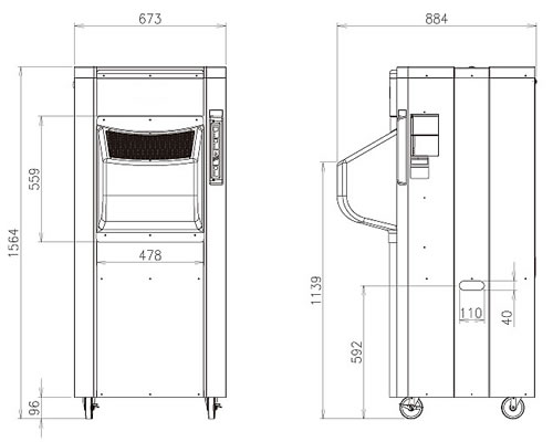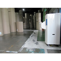 ■設置は簡単。水道水でOK 100V電源があれば使用可能です。 キャスター付きなので、工場のライン替えや不需要期の移動が簡単にできます。 また使用する水は水道水でOKです。 水道ホースと本体タンクを接続すれば、自動給水ができます。 ■加湿エレメント乾燥機能付 加湿エレメントが濡れたまま停止するとニオイ発生の原因になります。 MC35E-2112Sには加湿エレメントを乾燥させ、自動的に本体を停止させる機能が付いています。 ■ご使用にあたっての注意 ※周囲環境温度:5~35℃ 工業用です。 ※人専用加湿機ではありません。 ■使用例 ![]() ■寸法図
