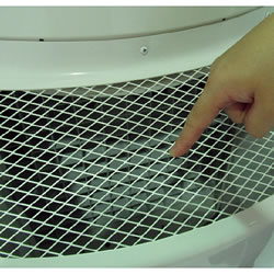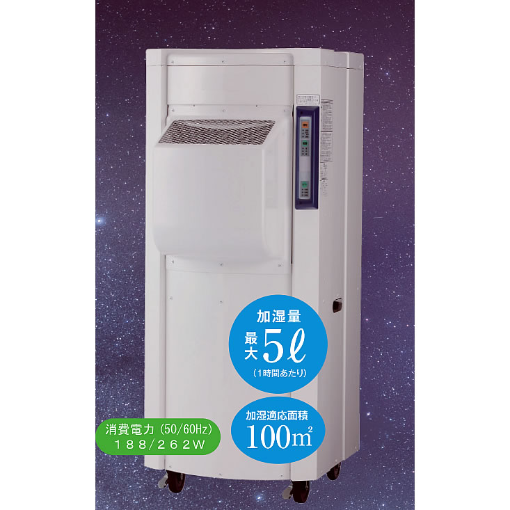 | 工業用加湿機。最大加湿10.1L/h 静電気対策・作業者インフルエンザ予防 ●静電気による製品トラブル防止 ●製品へのホコリ付着を防ぐ ●紙類のミスフィード防止 ![]() 抜群の加湿力最大10.1L/h 加湿することで静電気発生を抑制できます。 また、空気乾燥による作業者ののどの粘膜防御機能の低下を防ぎます。 ■加湿面積の目安 室温20℃、湿度20%の室内(天井高さ2.5m)で使用した場合のグラフです。 湿度20%から湿度50%にするためのMC35E-612Sで100㎡、MC35E-2112Sで200㎡が目安となります。 ![]() ■指が入らない安心設計 吐出口は金網でガードされていて、物や指が入らない安心設計です。 ![]() ■ニオイを抑える消臭パック 消臭パックはニオイの発生を抑え、水回りを清潔に保ちます。 1個で約1ケ月効果が保たれます。購入時4ケ標準装備。 ![]()