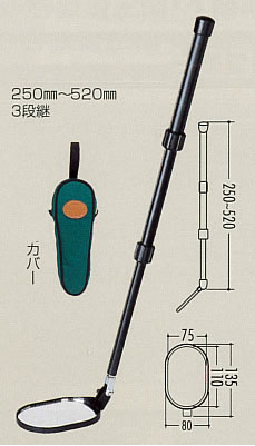 下水管点検ミラー(80×130mm)![]() ●下水道マンホール等に入ることなく、ヒューム管内部の点検ができます。 ①水道管からヒューム管への漏水の点検 ②その他による流入水のチェック ③流水の妨げとなるゴミ、石等の検査 ■路上より点検ができるので酸欠、有毒ガス等の事故防止となります。 ●溝付きパイプの使用により、どの部分からでも簡単に長さの調節ができます。 ●アルミタイプだから軽くて持ち運びに便利 ■タイプ/寸法図