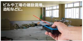 屋内長距離用![]() ■特長 ●見やすい液晶 明るい場所でも読み取りやすい黒背景に白文字です。 ![]() ●測定単位切り替え メートル表示と尺相当目盛表示を切り替えできます。 ![]() ●長距離測定 50mまで測定できます。 ![]() ●メモリー記録 現場で測定し、事務所で呼び出しできます。 ![]() ■仕様 ![]()