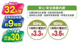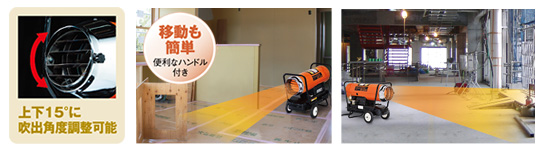 | 単相100V ラクラク移動 サーマルプロテクター付 ![]() ■特長 ●32kWでハイパワー暖房!様々なシーンでフル活用できる大型タイプ! ●暖房用だけでなく、塗装現場やコンクリート養生などの乾燥用としても活躍! ●必要な場所だけ暖めるから効率的 ●素早く・暖かく、使いたい時に急速点火ですぐ使えます。 ![]() ![]() ■仕様