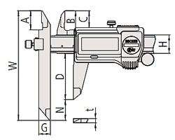| 本尺のジョウを上下にスライドさせることができ、段違い部の測定が正確にできます。 段差測定も可能です。 ![]() ■測定部寸法図(単位:mm) ![]()