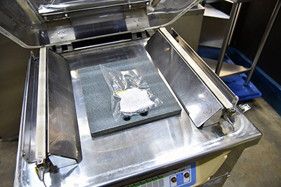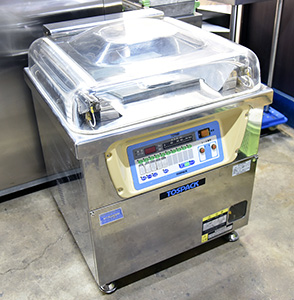 上ぶたに大型クリアドームチャンバーを採用。運転中も中の状態を確認しやすく、シールの失敗を未然に防げる。両サイドシール方式を採用。シール有効長550ミリメートル×2で小袋の大量パックに向く。庫内が平らで品物の出し入れや清掃が行いやすい。オールステンレス構造。