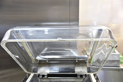 ●あらゆる角度からパック作業の確認ができる大型クリアドームチャンバー採用。