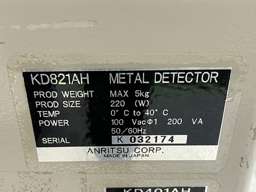 中古アンリツ金属探知機(アルミ袋専用)/品番 KD821AH