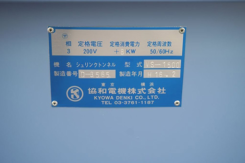 中古協和電機シュリンクトンネル/品番 VS-1500