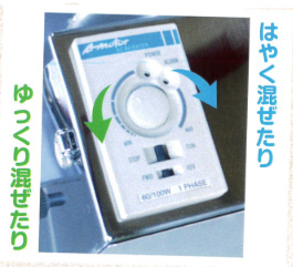 | 容器が外せる卓上ミキサー! 弁当屋・総菜屋・唐揚げ屋・ラーメン屋など小店舗に! ![]() ■商品画像 ![]() ■小回りが利いてます! ●小スペース ![]() 限られた設置場所に対応できる小スペース設計。 500mm×600mmの面積が有れば設置できます。 ●容器が外せる ![]() ワンタッチで固定金具を緩めれば簡単に容器が外せます。 フタをしてそのまま保存してもOK! (容器:ステンレス33cm寸胴) ●混合速度調節機能 ![]() インバーター制御なのでダイヤルを回せば回転速度を調節できます。 (3~28rpm) |