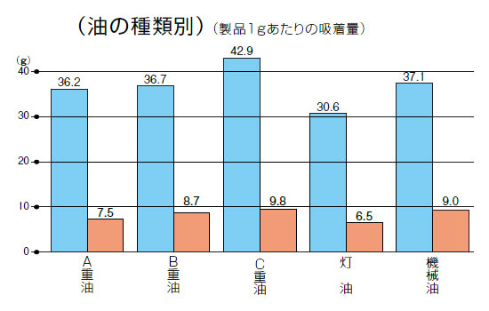 | ■特長 ●使いやすいサイズにカットされた吸着材。 漏油対策用、排水対策用等として幅広く使用されています。 ●M1366AB-OIL-SHPタイプは毛羽押さえ&圧縮加工で強度アップ 強度強化のため、足元床面の使用に最適。そのほか各種機械周り拭き取りや、オイル缶などの下敷きなどに優れたオールマイティなシートタイプです。 ●M1366AB-OIL-RLタイプは様々な用途に使えるロールタイプ。 様々な用途に使えるロール状。用途に合わせてカットも可能です。 緊急時の広範囲使用や各種機械周りの拭き取り、水面の浮上油吸着や路面、床面状の流出油吸着におすすめの天然繊維高性能油吸着材です。 ●大容量吸着でコスト削減 ●軽量なので持ち運びも簡単 ●様々な油に対応 ●ISO9001取得 ■吸着量の比較 ■・・・M1366UA-F5050K ■・・・ポリプロピレン系の一般製品 ![]() このほか、石油系の鉱物油、動物油、植物油にも、すぐれた効果を発揮します。 【吸着測定方法】 20℃の油面に5分間浮かべ、さらに金網の上に5分間放置したあとで測定。 【国土交通省型式承認の油吸着材性能試験基準による規定】B重油で自重の6倍以上。 ※適切でない使用方法や水中に界面活性剤などが混入している場合には、吸着量が異なることがあります。 ■用途 ●各種機械周り拭き取り ●オイル缶などの下敷きに ●水面の浮上油吸着に ●路面、床面の流出油吸着に ●強度強化のため足元床面の使用に最適(M1366AB-OIL-SHPタイプ)