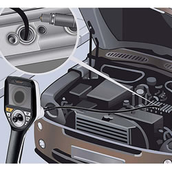 | ぐりぐり ぐるっと360° 自在に操るファイバースコープ。 先端可動式工業用内視鏡、ビデオインスペクター3D。 先端可動式工業用内視鏡ビデオインスペクター3Dは全方向(水平)360°、湾曲(垂直)最大210°、 ジョイスティック操作で自在に先端カメラを操り、手の届かない場所の確認・撮影・保存ができる工業用内視鏡。 IP68完全防水カメラには7段階輝度調整可能LED搭載。マグネット付ホルダーマウント付属。 ![]() ■特長 ●直径6mm、ケーブル長1m完全防水(IP68)カメラ。 カメラヘッドは耐食・耐熱性に優れた堅牢チタン素材、ケーブル部は長寿命かつ柔軟性に優れたタングステン素材採用。 ●静止画・動画(960×720ピクセル)撮影・保存(MicroSDカード最大8GB使用可能) ●7段階輝度調整可能LED ●4倍デジタルズーム ●先端可動式カメラ、直感ジョイスティック式 ![]() ●単独作業や据え置き作業に重宝するマグネットホルダーマウント付属 ![]() ●破損時も交換可能な着脱式カメラケーブル メンテナンスや収納に便利な脱着可能カメラケーブル ![]() ■用途 ●エンジンルーム、機械内部 ●配管、排水溝、水回り ●空調設備 ●屋根裏の確認 ●瓦礫下の捜索・救助活動 ![]() ■収納ハードケース 落下時の衝撃から機械を守ります。 ![]() ■仕様