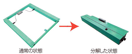 | ちょっとした時に使いたい、そんな時でも楽々。 組立式でかつてない扱いやすさを実現。 ![]() ■特長 ●使用用途に合わせて組み立て・解体ができる台はかりです。 「計量したいけど毎日使うわけではない」「しまっておく場所がない」そんなお悩みにお答えし、使わない時は、はかりを分解して収納することが可能です。 あらゆる大きさのものを計量したい場合でも、連結バーを取り外せば場所を変えて計量することも可能です。 ※分解した状態でご使用頂く場合は国家検定非対応となります。 ![]() ●使わない時はコンパクトに収納、場所を選びません。 はかりを使用しない際は、連結バーを取り外してコンパクトに収納することが可能です。 通常の台はかりとは異なり、コンパクトに分解ができるので輸送コストの削減にも繋がります。 「ちょっとした時に使いたい」「複数の拠点で使いたい」そんな場合に最適な分解式台はかりとなっております。 ![]() ●国家検定対応品 国家検定対応品の計量器なので、取引・証明にもお使い頂けます。 ※分解した状態でご使用頂く場合は国家検定非対応となります。 ■外観図 ![]() ■仕様
