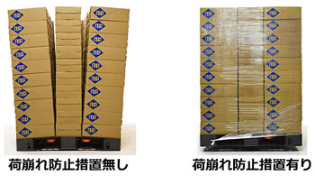 | 輸出梱包推奨、カートン配積み等の安定した荷の均等積み付け用(M1409SR-1111NP) 輸出梱包推奨、カートン等定型物の均等積み付け用(M1409LR-1111NP) ![]() ■コーナー桁部にストレッチフィルム巻き始め用フックを設置 ![]() ■面形状だから、ハンドリフターを入れやすい ![]() ■荷崩れ防止装置とは 曲げ強度の弱いパレットは、積載物が固定されていないとリフトアップ時に荷割れが起こり、そのままでは搬送できません。 ストレッチフィルムやバンドを巻くことによって搬送可能となり、荷崩れによる積載物の破損や損傷を防ぎます。 ![]() ■仕様