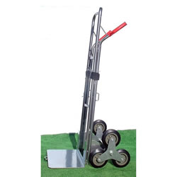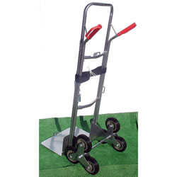 スチール6輪階段台車大型荷台シルバー(荷締めベルト付属)
