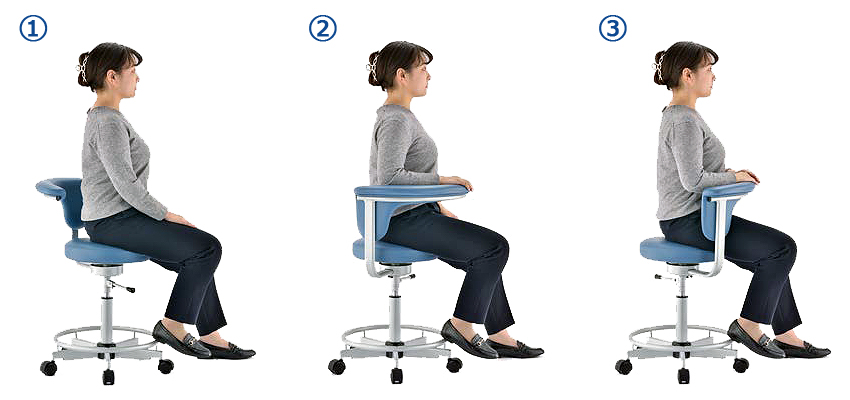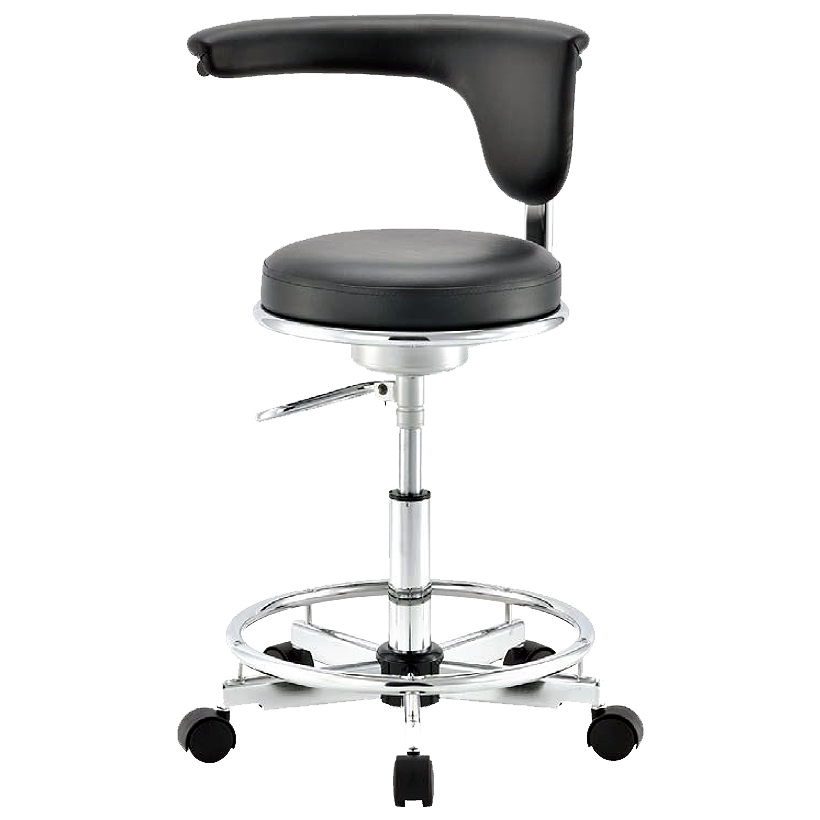 | ■特長 ●病院や研究施設、工場等で使用できる万能チェア ●背・座独立回転機構で着座したまま背部を回転させることが可能です。 長時間作業をする際の背もたれとして機能します。 背部を横や正面に回転して腕を固定し、安定した作業を可能にします。 ![]() ●丸型昇降レバー ![]() ●ナイロンキャスター脚仕様 オフィスチェア/ワーキングチェアで多く使われているキャスターです。耐油・耐薬品性もあり多くの作業現場でも使用されており摩耗性にも優れています。 ![]() ※固定脚、ゴム単輪キャスター脚、セルフブレーキキャスター脚仕様に変更も可能。(有料) ![]() ●フレームカラーはクロームメッキ ![]() ●張地色は全12色。豊富なバリエーションからお好みのカラーでオーダーいただけます。 ![]() ■タイプ