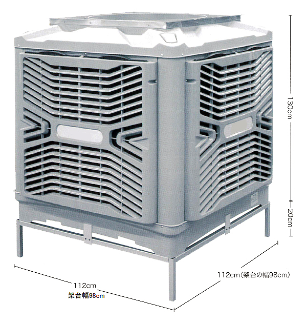 | ■特長 ●屋外に設置することにより作業スペースを無駄にすることなく冷風を送ります ●水の気化熱により外気温より-4℃~-9℃の冷風を室内に送り込みます。 ●湿度センサーにより設定した湿度以上になると循環水を止めて無駄な水の消費、湿度の上昇を防ぎます。 風量調節用インバーター、湿度センサーは国内メーカー製です。 ![]() ![]() ■仕様