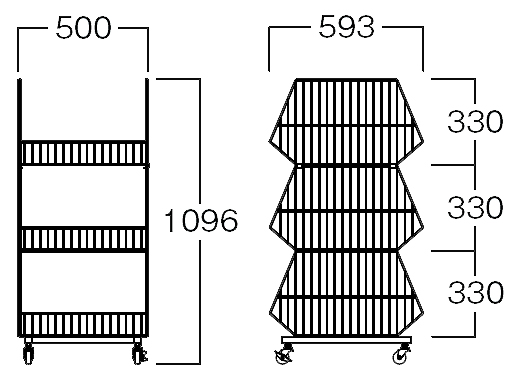 | ■特長 ●両サイドから取り出し可能なメッシュラック ●スーパーマーケット、百貨店、ドラッグストアなど、流通小売業の店舗プロデュース ![]() ■寸法図 ■仕様