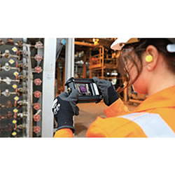 | 国内防爆認定を取得したハンディ型赤外線サーモグラフィカメラです。 デジタルカメラからのリアルタイム輪郭補正MSXやタッチパネル搭載のM2432EX-6TFの操作性はそのままに、危険エリアでの使用を想定した堅牢なケースが付属します。 M2432EX-6TFを使用すれば、危険物の貯蔵・供給ステーションや製造所、工場などの防爆規定のエリアでも安全かつ手軽に温度分布を確認することができます。 ※ご注意※国内正規品のみが日本防爆規格を取得しております。 必ず正規代理店よりご購入ください ![]() ■ゾーン2の水素ガスの雰囲気で使用可能 水素貯蔵・供給ステーション・燃料電池製造所、化学工場、製鉄所など水素ガスを使用するところでも使用できます。 ■国内防爆規格取得 防爆記号 Ex t IIIB T135℃ Dc(粉じん)、 型式認定番号 第TC22927 X号、 防爆記号 Ex n RIICT4 Gc(ガス)、 型式認定番号 第TC22926 X号 ■データアウトプット 付属のUSBケーブルでPCに取り込みをおこなうかオンラインクラウドサービスFLIR Igniteへのアップロードを選択できます ■現場で異常温度を発見・すぐ補修 コンパクトなハンディ型のサーモグラフィカメラで、設備の温度状況を気軽に点検できるため、設備異常を故障前にチェックできます。 ![]() ■使用例1:配管点検 ブタジエン使用の配管では、ポップコーンポリマーが発生し、爆発事故等に繋がる可能性があります。 この予防にはサーモグラフィカメラで温度上昇がないかをチェックすることが有効です。 ![]() ■使用例2:モーター点検 モーターとその潤滑剤が経年劣化すると、ベアリングが摩耗し、モーター・ベアリングに発熱を伴う摩擦が発生し、ベアリング・ハウジングの外側が熱くなります。 ![]() ■クラウドサービスでデータの取り出しが簡単に ※USBケーブルでのデータ取り出しも可能です。 ①クラウドアカウントにデバイスを登録 ②現場で撮影 ③カメラをネットワーク環境に ④クラウドサーバーに自動UP完了 ■仕様