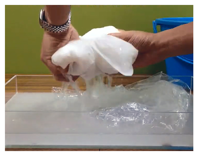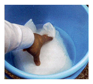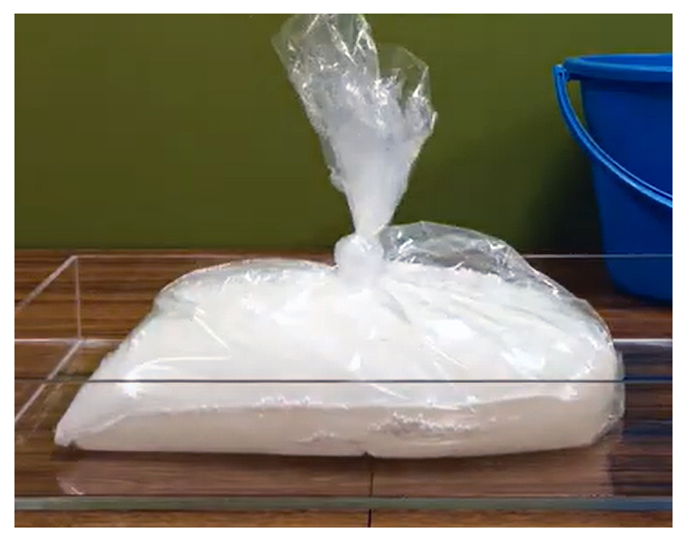 ■ご使用及び、保管のご注意 ●水のみの吸収です。海水、油分は吸水しません。 ●1回限りの使用で、繰返しのご使用は出来ません。 ●外袋は、丈夫な不繊布ですが、尖ったもので破損することがあります。 ●吸水後は落下や破損により、吸水ポリマーが流出することがあります。 ●吸水後の運搬は、両手で両サイドのシール部分を持って下さい。 ●高温多湿 火気付近を避け、直射日光の当たらない場所に保管して下さい。 ●脱水剤を使用する際、脱水剤の注意事項をよく読んでご使用下さい。 (脱水剤の特性上、開封前に溶けることがございますが、利用上問題ありません。) |